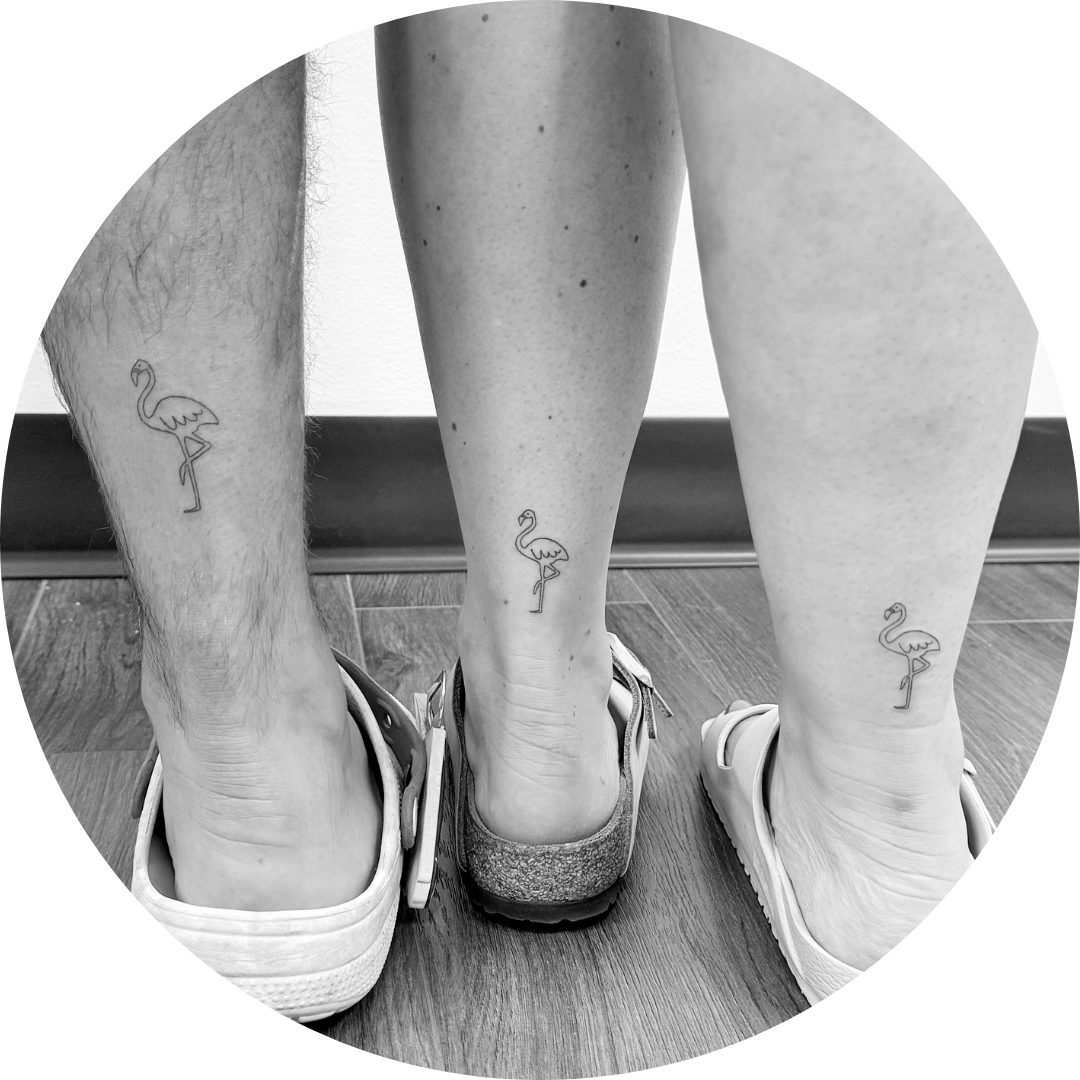 Group tattoos are available for two or more people. Discounted rates may apply when booking as a group with the same or similar design. Pricing varies based on design and placement, with projects starting at $100+ per person.